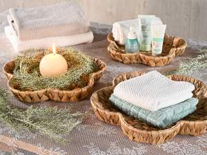 Paniers, plateaux en forme de fleur en jacinthe tressée en lot de 3 pièces