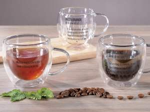 Tasses en verre à double fond avec inscriptions décoratives de dictionnaire Thé / Americano / Grande tasse