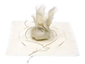 Tulle rond pour bonbonnières en organza écru avec cordon de serrage et bordure pailletée argentée