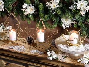 Photophore de Noël en métal doré en forme de sapin de Noël et étoiles avec pot en verre cm 14,5 x 5,5 x 24,5 H. Vasetto portatealight: Ø 5,5 x 6,5 H