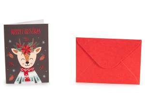 Cartes de vœux de Noël avec décorations en relief 3D et enveloppe colorée, décorées d'illustrations festives de bonhommes de neige, de rennes et de biscuits en pain d'épices.