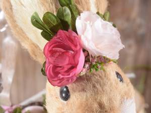 Lapins de Pâques avec oreilles malléables en fibre naturelle avec noeud rose et fleurs décoratives