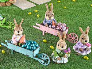 Lapins de Pâques décoratifs en fibre naturelle avec décorations