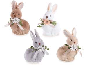 Lapins décoratifs en fourrure écologique douce à placer avec noeud et fleur