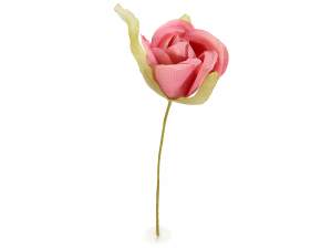 Pioche artificielle fleurs en tissu rose Ø 3,5 cm x 13 H. Con gambo modellabile