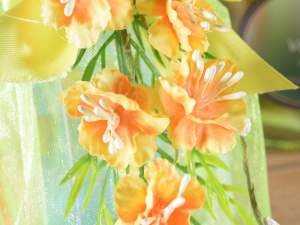 Bouquets cueillis de fleurs artificielles colorées avec un nœud en organza, des baies et des feuilles cm 13 H (c/gambo 18). Fiore: Ø 5,5