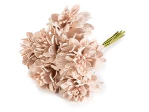 Fleurs artificielles en tissu couleur pêche pour sceller les emballages Ø 3,5 cm x 13 H. Con gambo modellabile