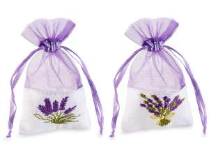 Sacs à cordon en coton avec des décorations brillantes sur le thème de la lavande cm 13,5x18 H (al tirante14).