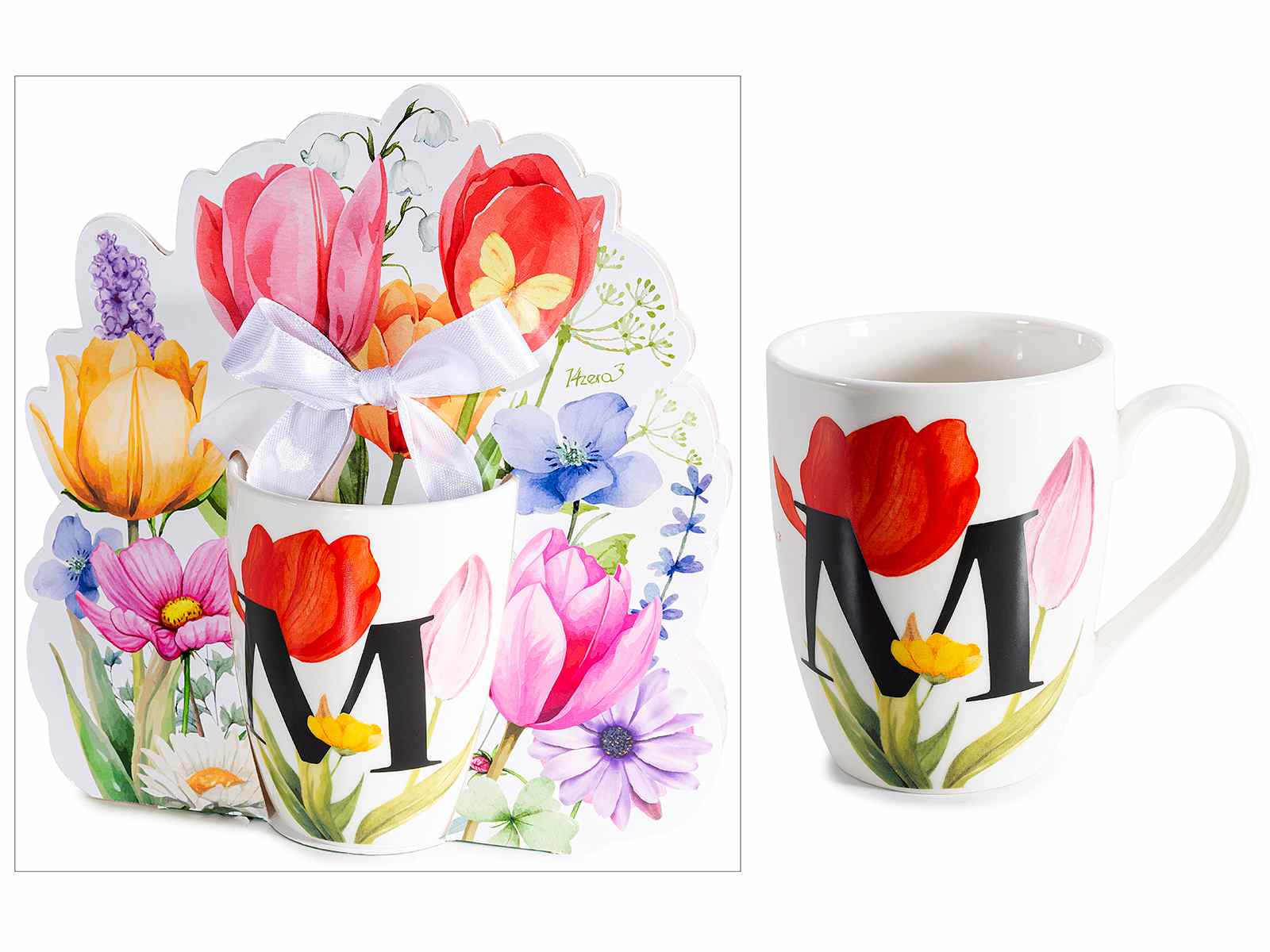 Tazza in porcellana 300 ml con stampa floreale e lettere