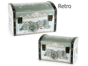 Scatole in legno foderato con chiusura a gancio e decorazioni schiaccianoci di Natale in set da 2 pezzi