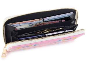 Portafogli da donna in similpelle con zip e stampa fiori e api
