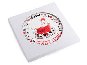 Sottopentola in ceramica con base in sughero decoro gallinelle con scritta Good Morning e Home Sweet Home