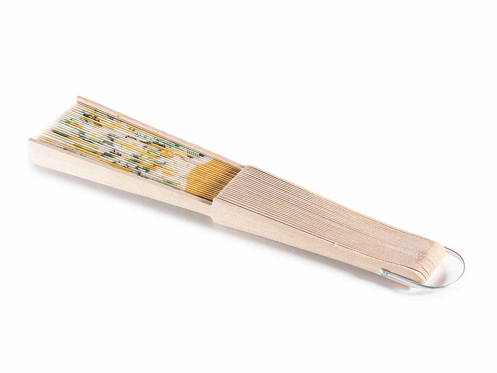 Ventaglio in legno e tessuto con stampa limoni e gancio