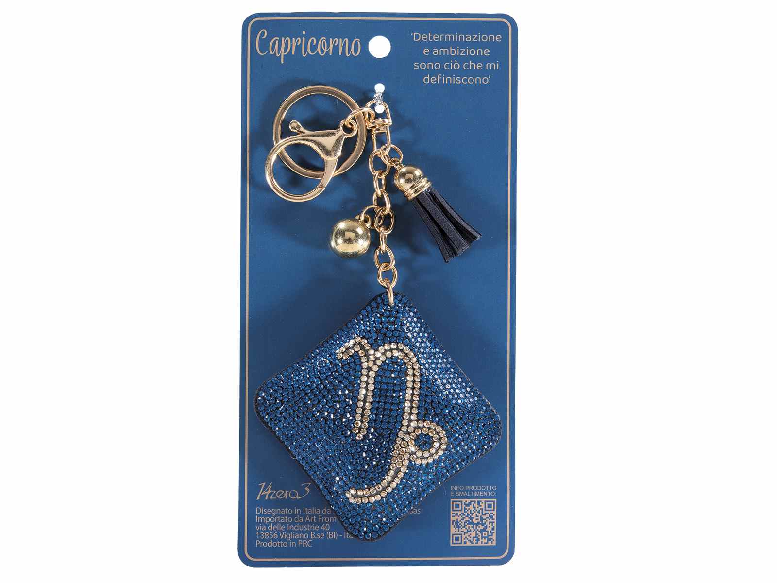 Charm a portachiavi segno zodiacale Capricorno con strass e pendenti in card con scritta abbinata