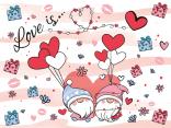 Tazze in porcellana con gnomi innamorati di San Valentino e coperchio con cuore