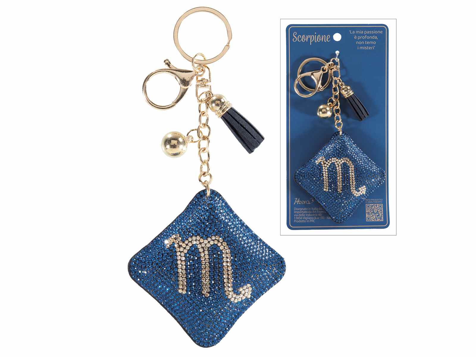 Charm / portachiavi zodiaco Scorpione con strass e pendenti
