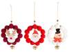 Addobbo natalizio legno con pompon, campanella da appendere