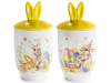 Barattoli a biscottiera / portadolci adatti all'uso alimentare in ceramica con coperchio a orecchie e stampa coniglietti pasquali