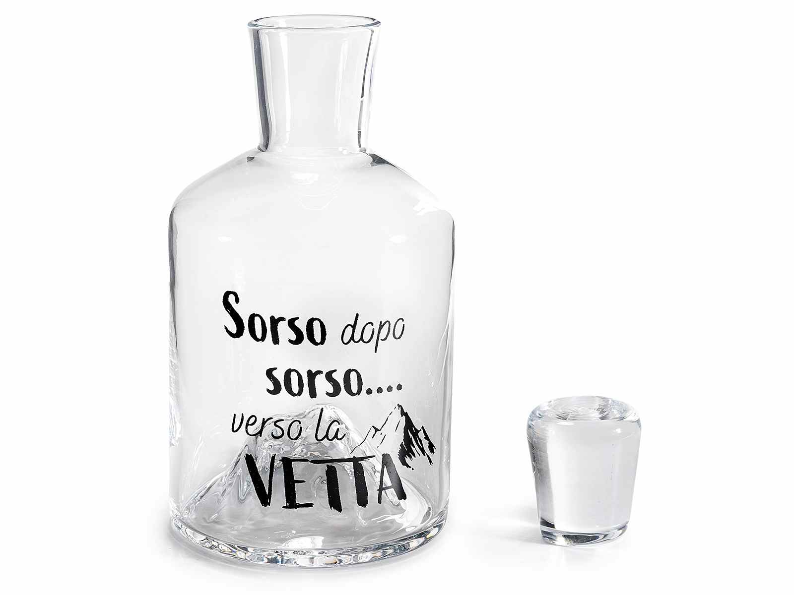 Bottiglie in vetro adatte al contatto alimentare con tappo e scritta Sorso dopo sorso, verso la vetta