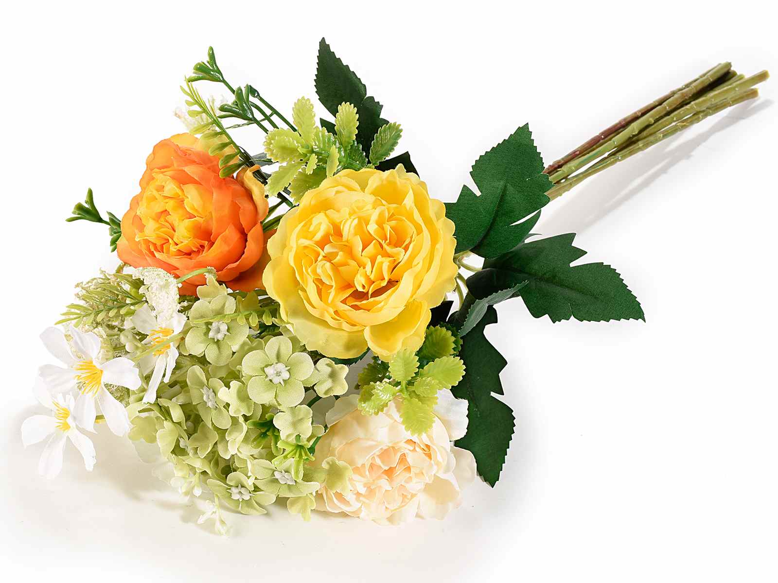 Bouquet peonie e gelsomino artificiali con nastrino in rafia