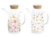 Caraffa in vetro alimentare 1L decori floreali e tappo legno
