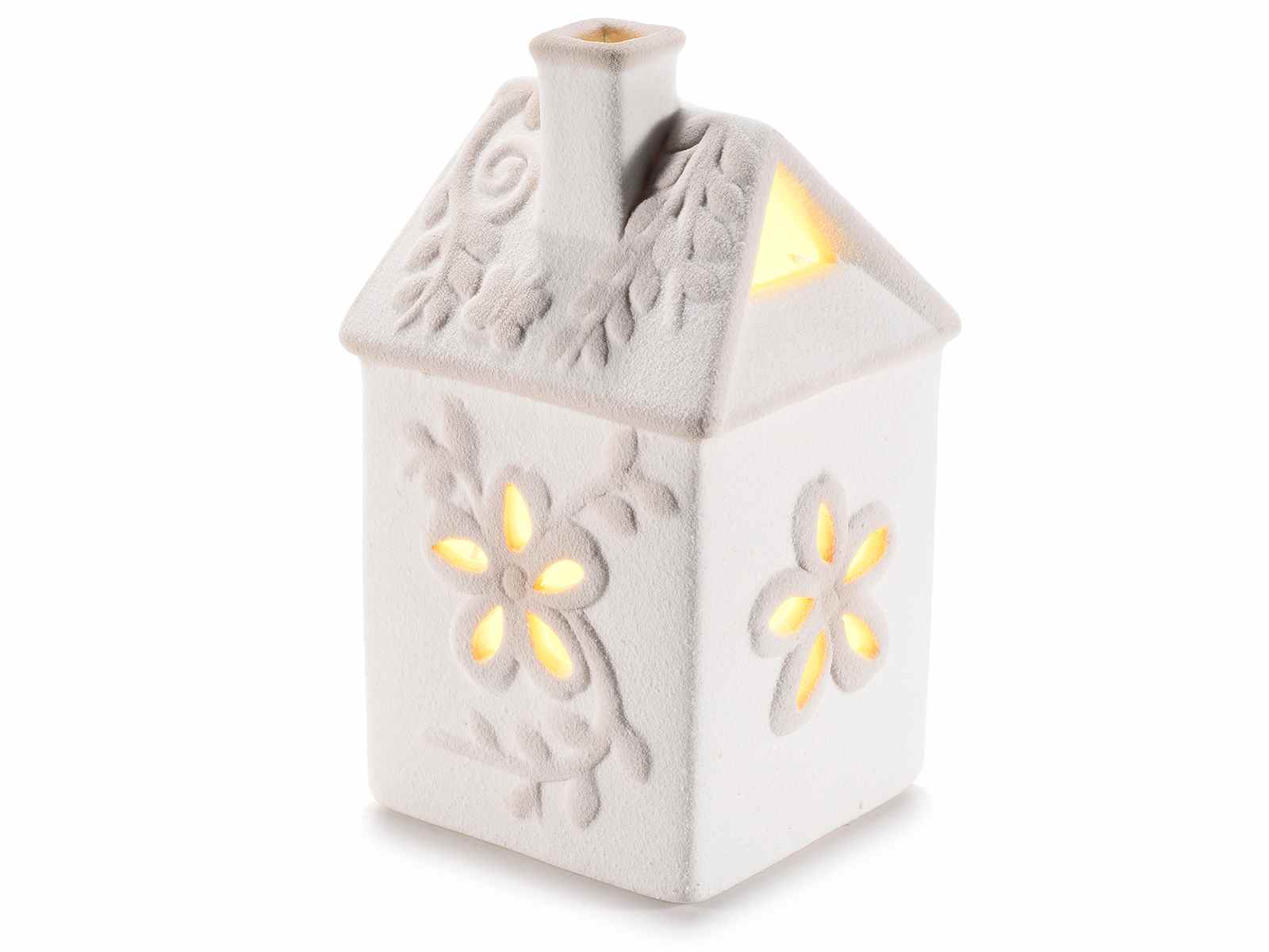 Casette in porcellana con dettagli tema fiori in rilievo e luci LED