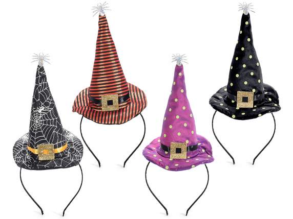 Cerchietti di Halloween con cappello e ragnetto argentato