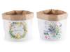 Cestini in stoffa con decorazioni floreali e interno in juta