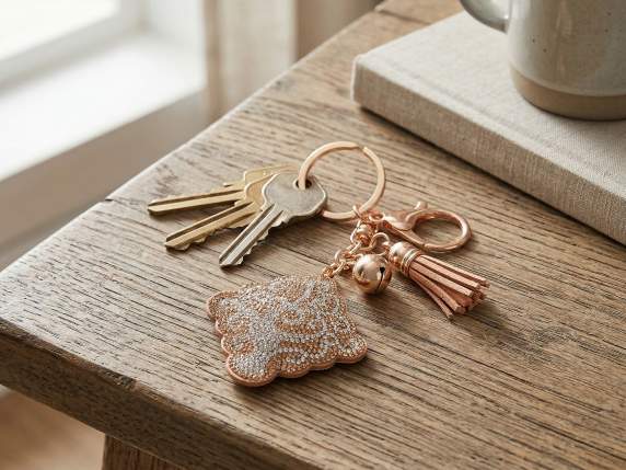 Charm a portachiavi design Albero della Vita con strass, nappina pendenti