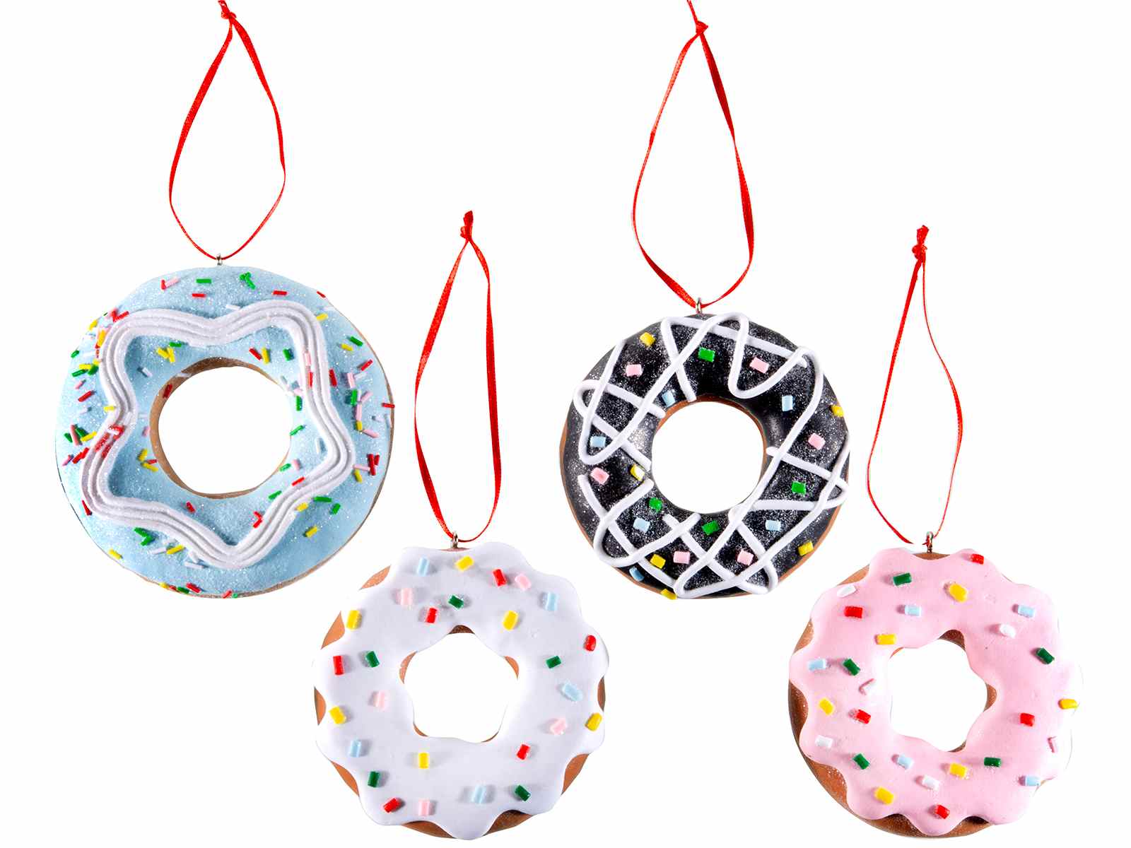 Ciambelle / donuts colorate per addobbi albero di Natale in pasta di resina, con cordino per appendere