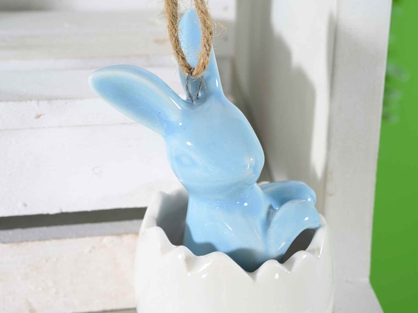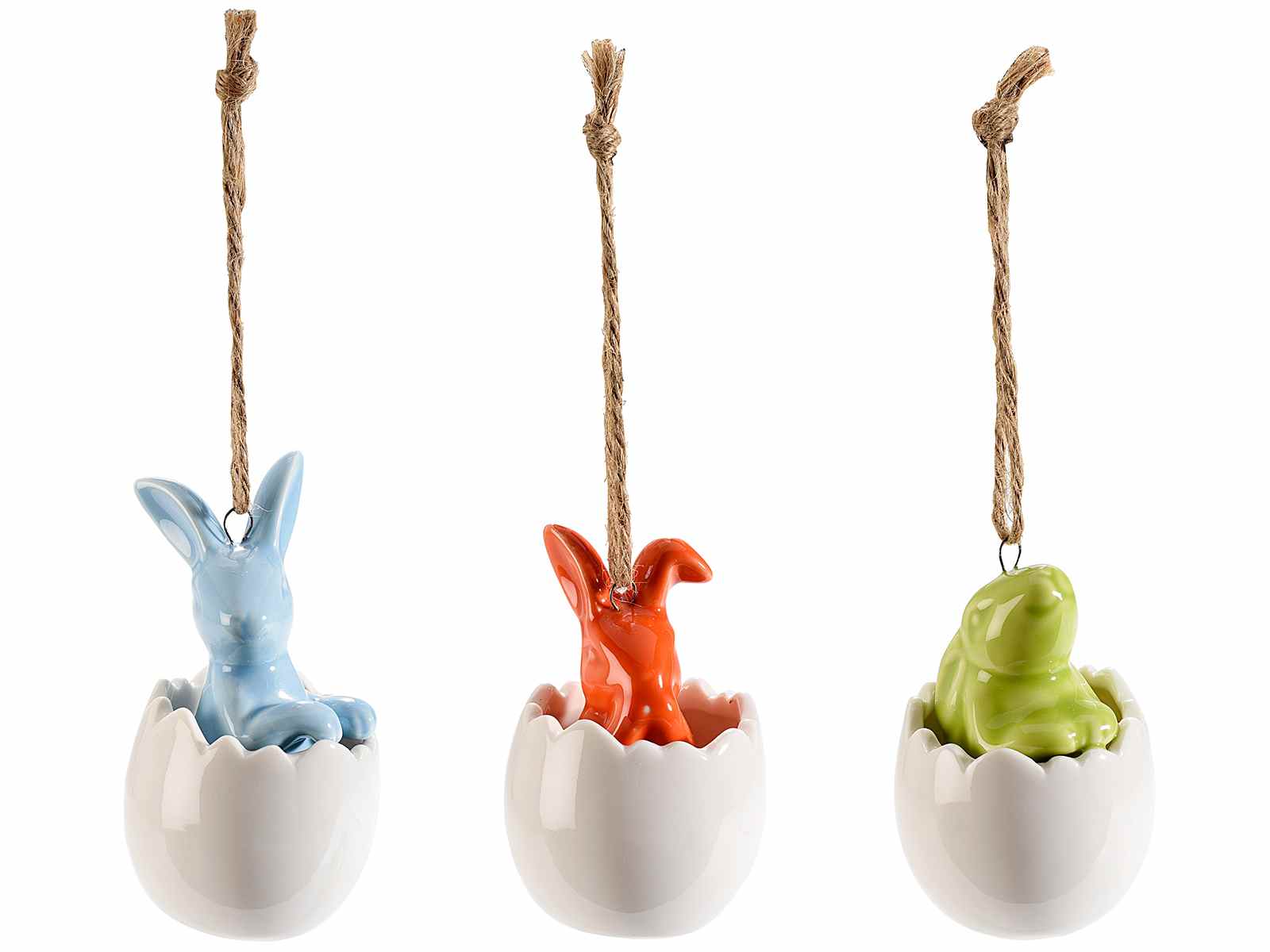 Coniglietti di Pasqua da appendere in ovetto in porcellana colorata