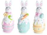 Coniglietti di Pasqua in resina bianca con uova colorate e decorate