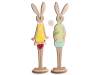 Coppia di conigli pasquali in legno colorato con decoro a fiore e cuore