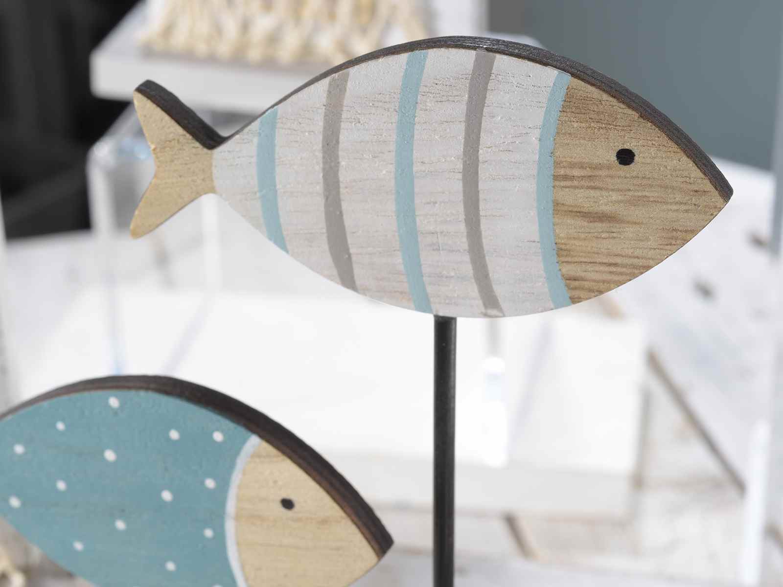 Decorazione in legno colorato con 3 pesci da appoggiare