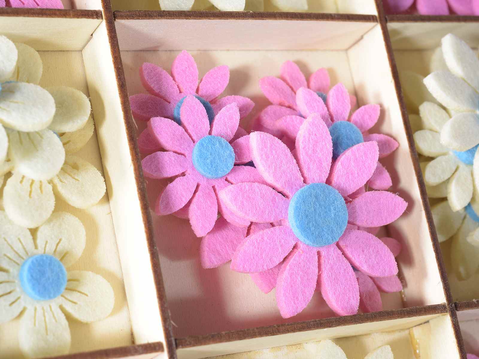 Espositore 144 fiorellini in panno bicolore con biadesivo