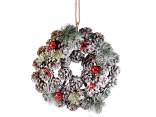 Ghirlanda di pigne innevate e palline dorate da appendere