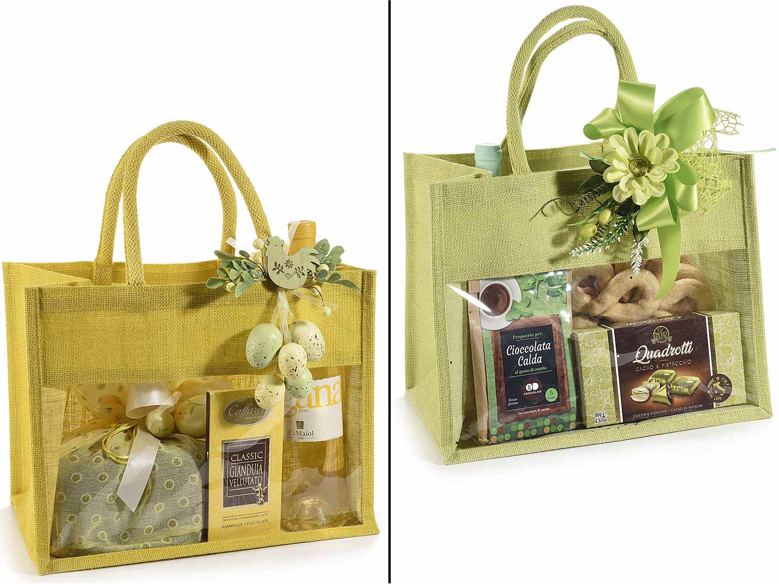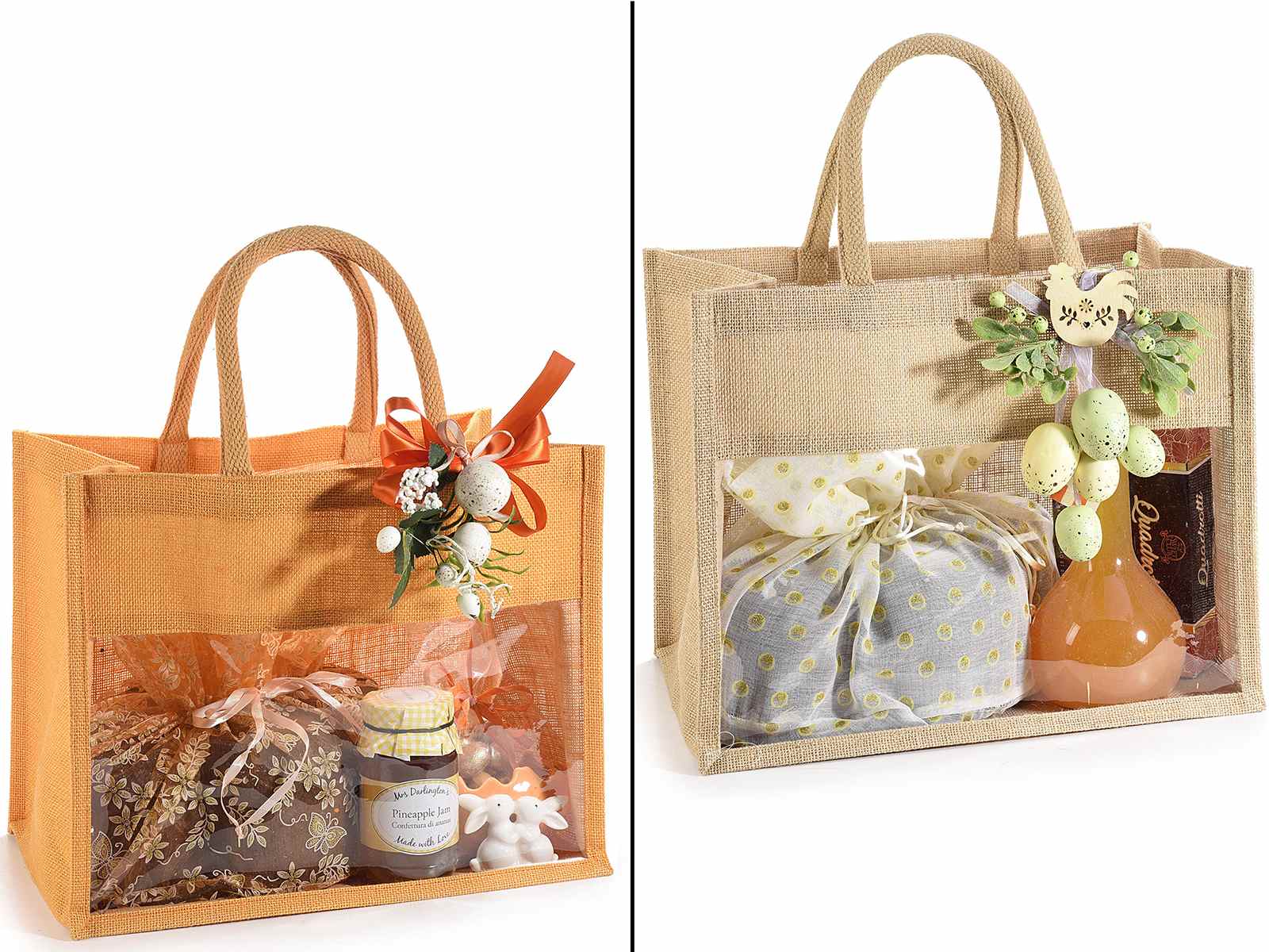 Borsette in juta con finestra trasparente e manici in corda di cotone per confezioni regalo