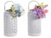 Lanterne in metallo con motivo traforato bianco, con manico, con mazzolino di elleboro e dente di leone artificiale in assortimento casuale