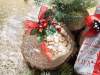 Mazzolini pick con rametti di pino, pigne, bacche rosse lucide con melograno