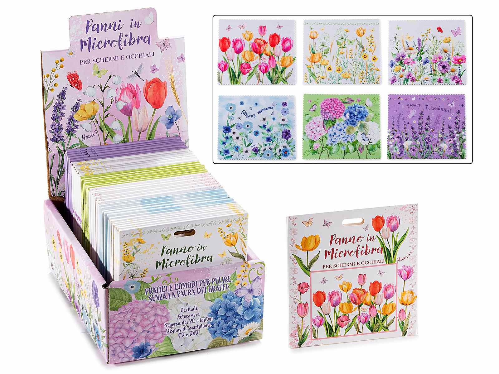Panno in microfibra pulisci schermo / occhiali con stampa fiori in espositore da 36 pezzi