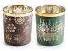 Portacandela natalizio in vetro colorato con dettagli simil oro lucido e decori