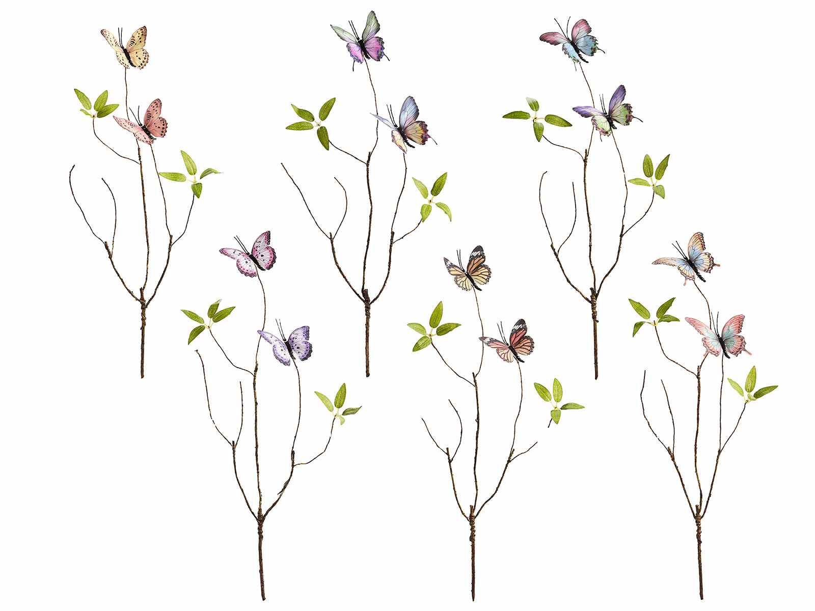 Rami primaverili artificiali modellabili con farfalle decorative applicate
