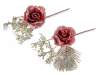 Rosa artificiale in stoffa con bordi e rami glitterati