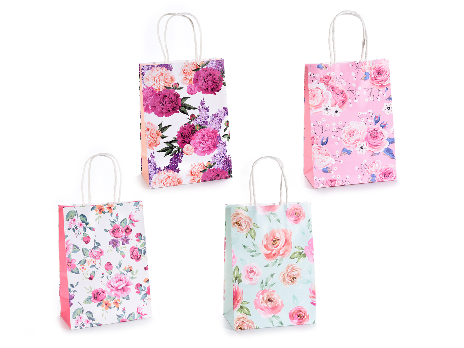 Sacchetti / buste piccole in carta stampa floreale con manici