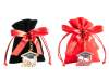 Sacchetti bomboniere laurea in velluto con portachiavi in legno e fiocco