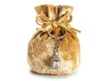 Sacchetti in velluto colore rosa con tirante e portachiavi con diamante color ambra e strass
