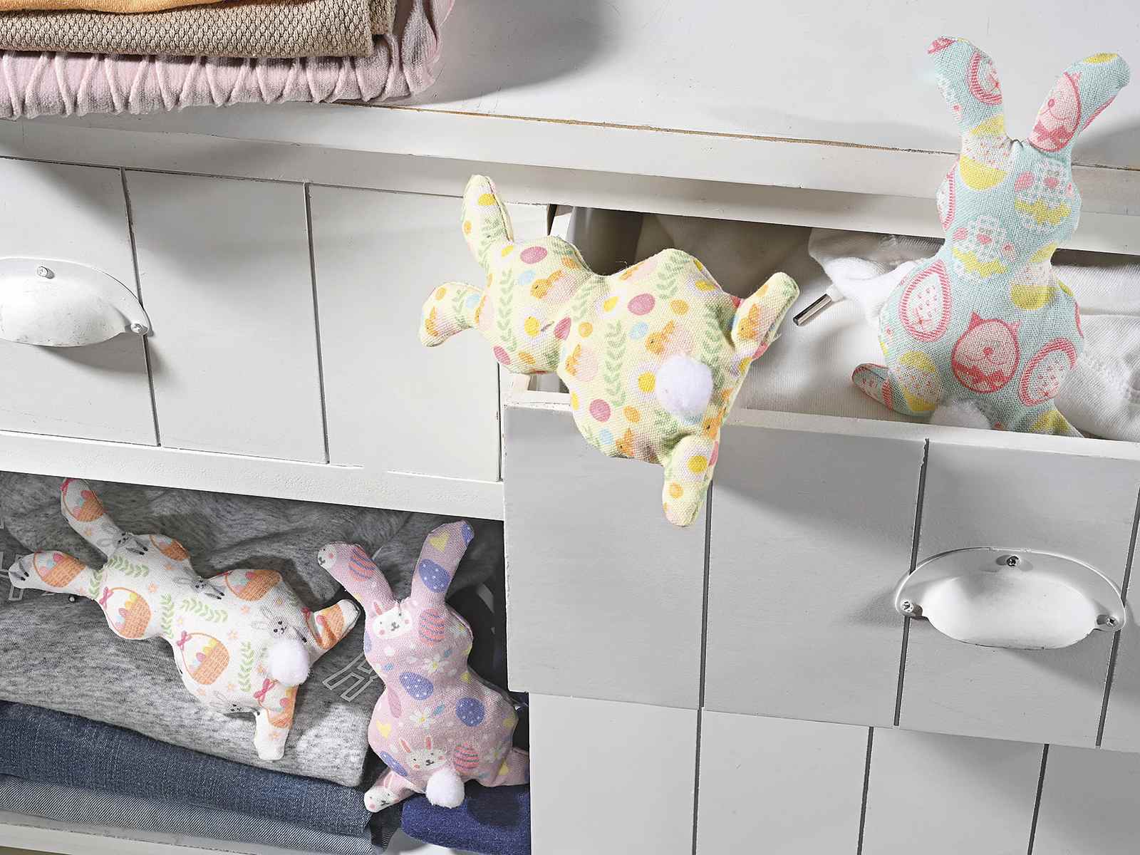 Sacchetti pasquali con granuli profumati per armadi e cassetti in cotone al 100% a forma di coniglietto con codina pompon