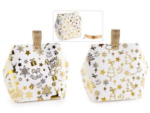 Scatoline a panettone con nastrino da appendere in carta colorata e decorata con gnomi e scritte