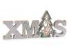 Scritta Xmas decorativa in legno con albero intagliato e dettagli in glitter oro e argento