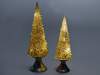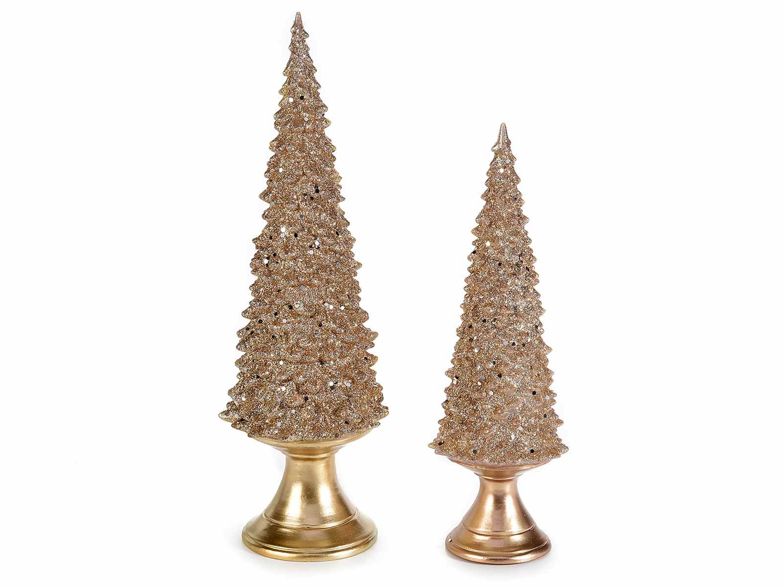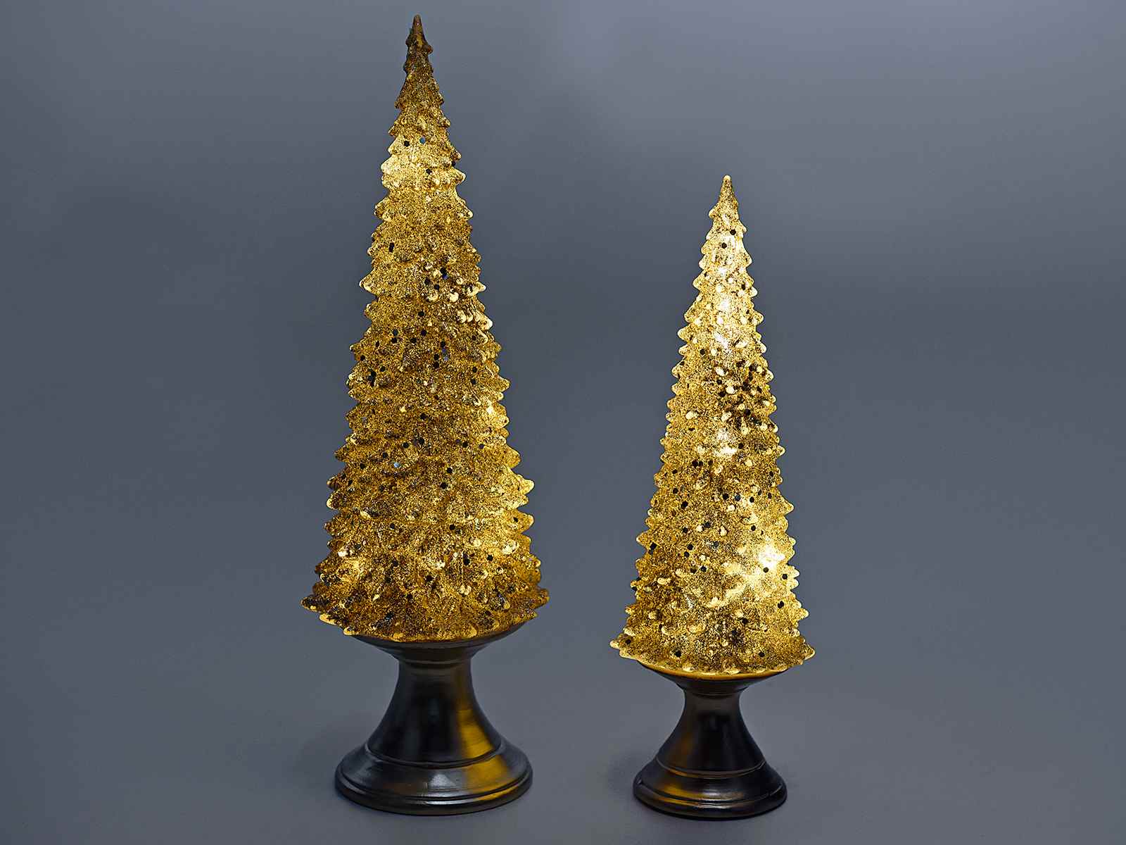 Alberi in resina dorata con luce a led e glitter in set da due pezzi